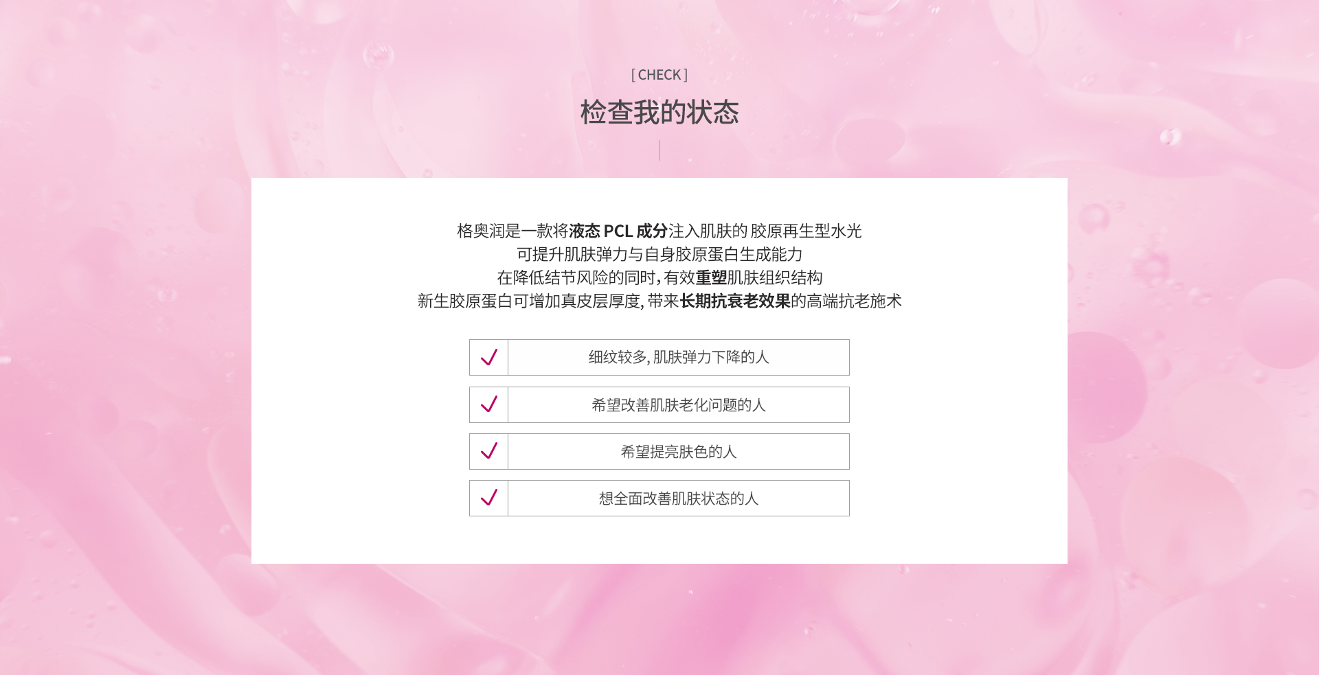 这是一种通过促进皮肤内胶原蛋白生成,重塑肌肤弹性与结构的水光疗程。