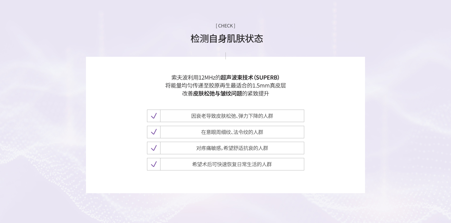 通过高强度超声波能量刺激皮肤内胶原蛋白再生,从而改善肌肤弹性并实现提拉效果的疗程。